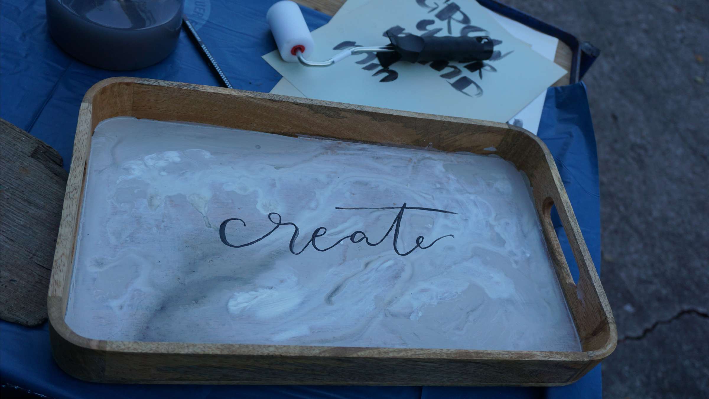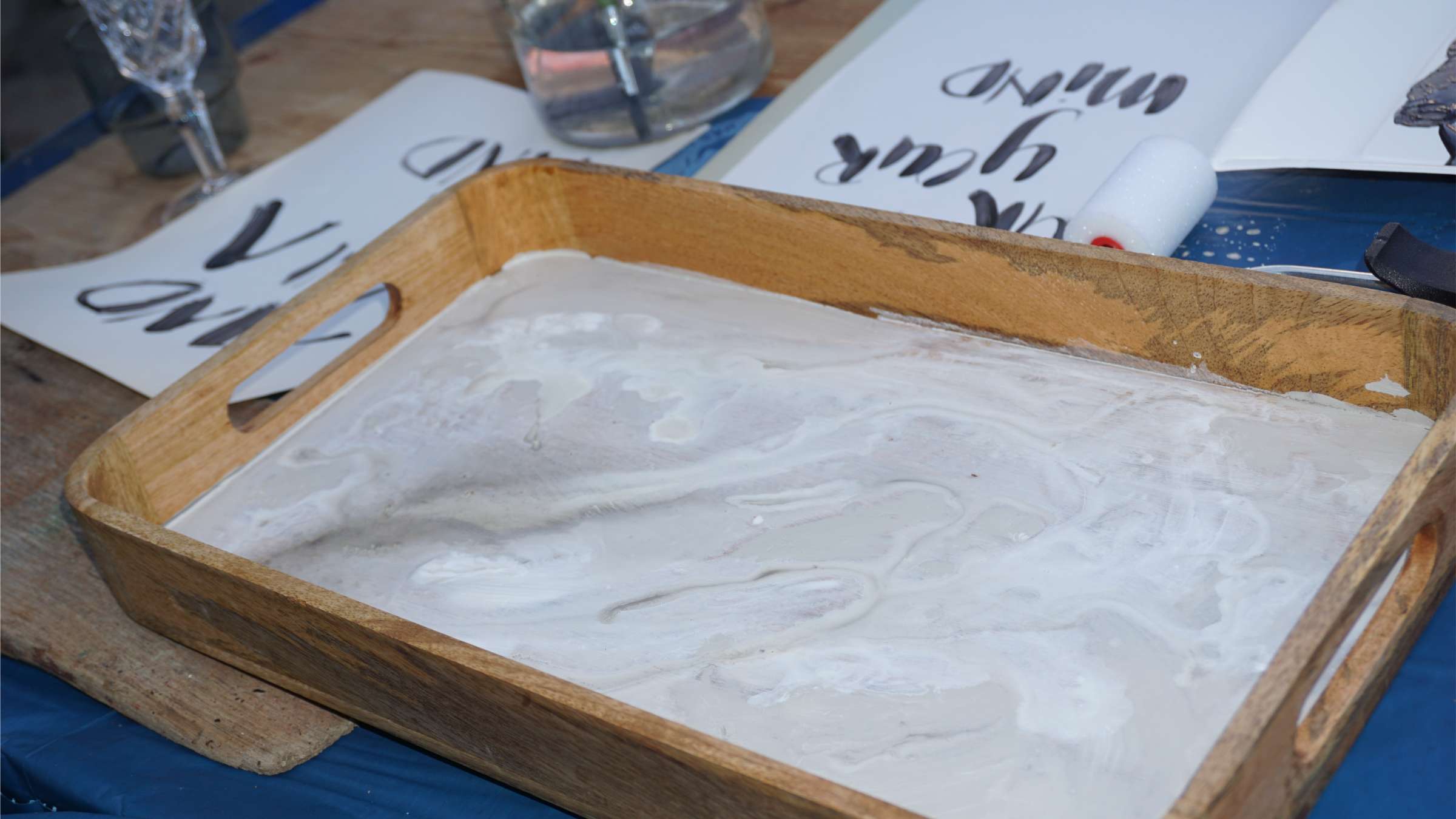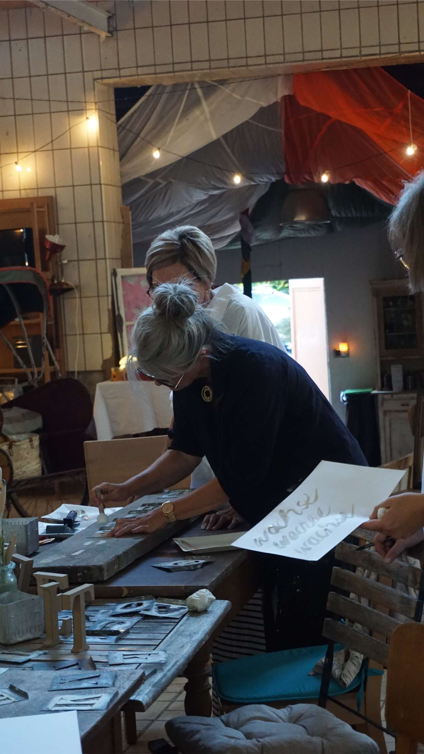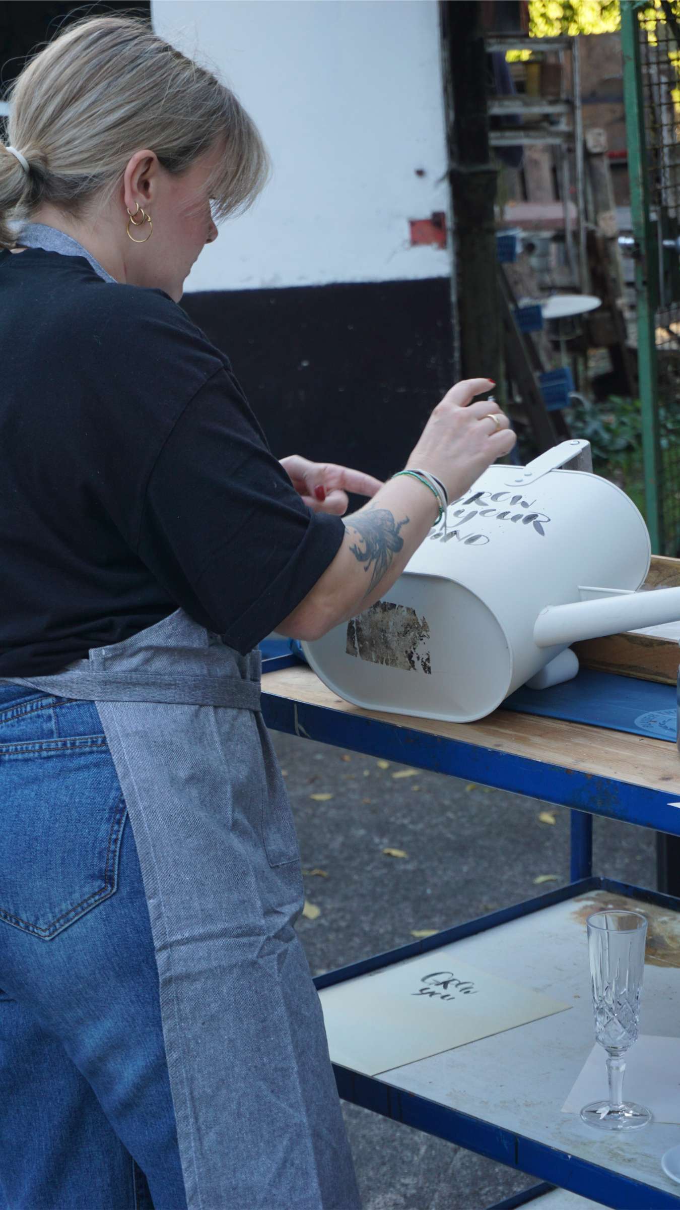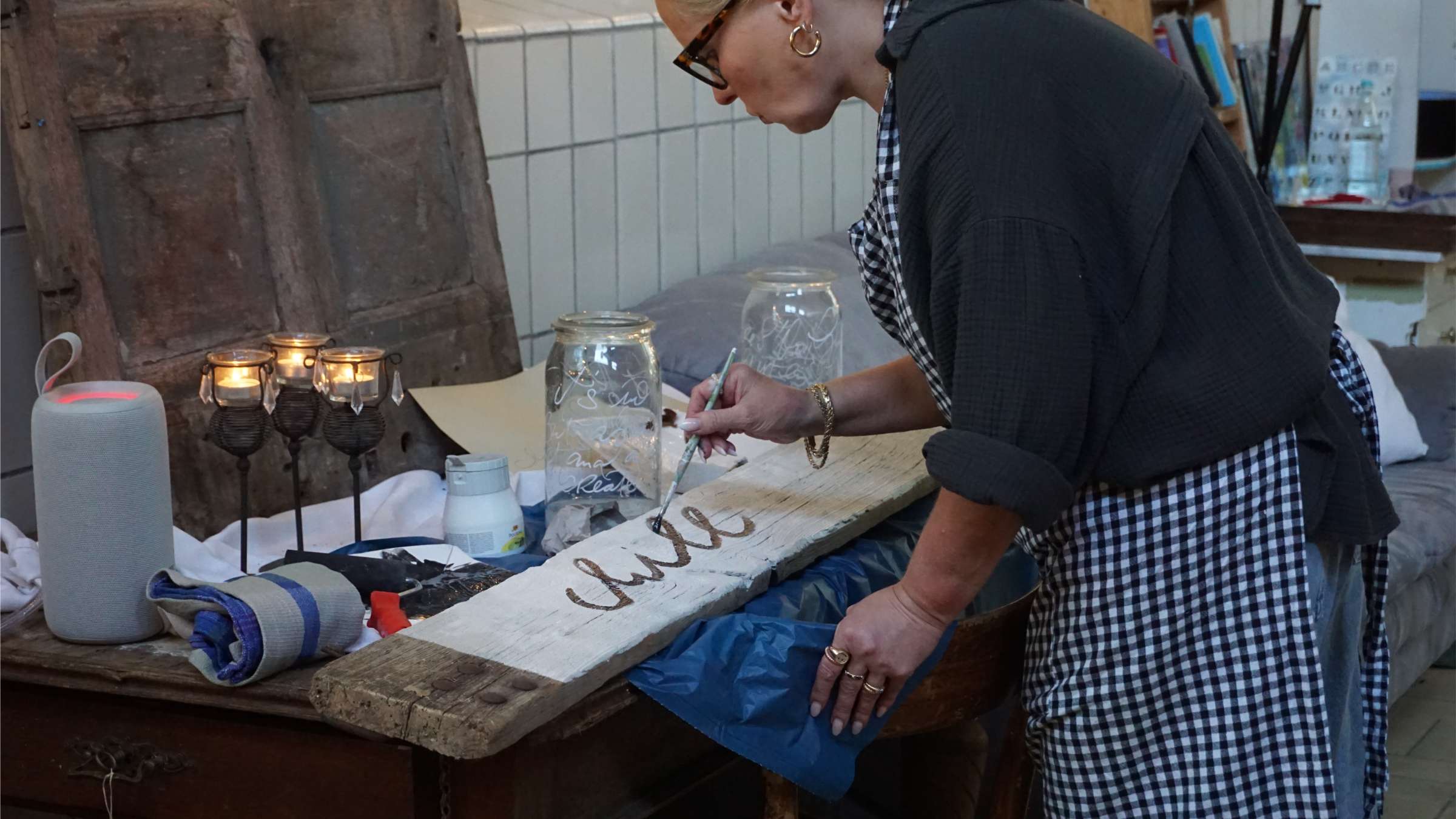 Im atmosphärischen Raum der Alten Molkerei gestalteten die Teilnehmerinnen einzigartige Objekte durch Upcycling-Techniken und künstlerische Schriftgestaltung (Handlettering), und hauchten vorhandenen Materialien neues Leben ein – mit Farbe, Worten und Fantasie.